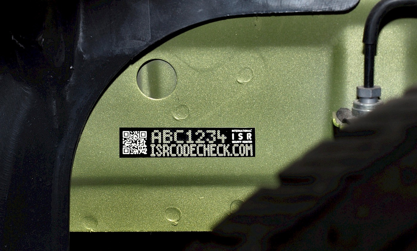 - Secure High-Value Components: Beyond the chassis, criminals target engines, doors, and body panels. Our Ultra-Destruct UV labels ensure every major component is linked to the International Security Register (ISR), making stolen parts high-risk and difficult to sell.